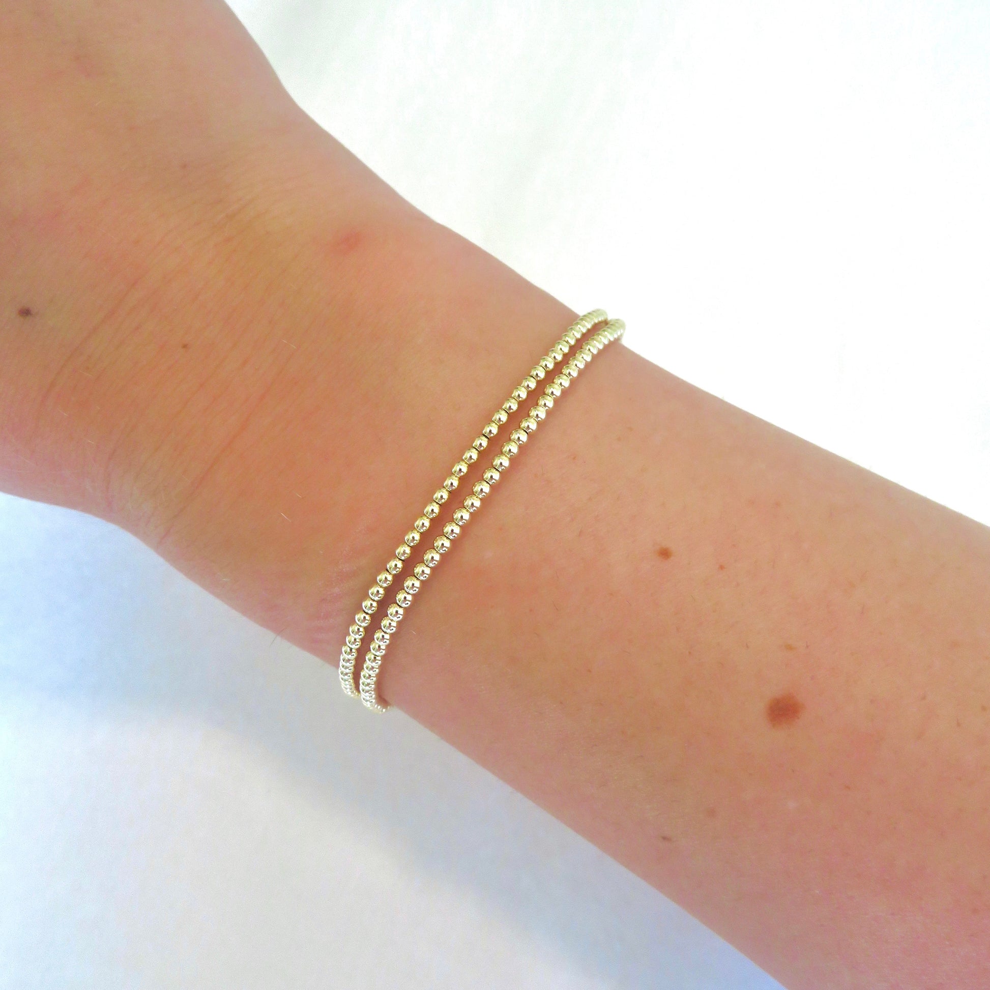 The 14kt Gold Filled Custom Bracelet is made with durable stretch cord and round 14kt gold filled beads.